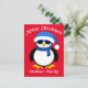 Cute cool penguin Merry Christmas red Postcard