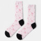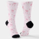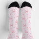 This charming pair of socks features a delicate coquette design, perfect for those who appreciate a touch of feminine flair in their fashion attire. The pattern showcases an intricate composition of delicate bows, blooming flowers, and leaf flourishes, all intricately detailed and set against a soft background. The hues are various tones of pink, ranging from subtle blush to deeper rose shades, creating a harmonious and inviting colour palette.