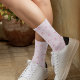 These cute socks with their whimsical design will appeal to anyone with an affinity for vintage or whimsically chic patterns, as well as those looking to add a gentle pop of colour to their footwear without being overwhelming. This feminine design will appeal to teens to adults.
