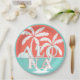 Cute retro chic white silhouette palm trees on an aqua turquoise blue coloured ocean and living coral red-orange coloured sunset background. Made for the sailor, boater, water sport, boating, sailing, ocean, sea, or beach lover.