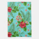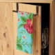Cute Coral Tropical Hibiscus Flower On Turquoise Tea Towel