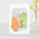Show someone you care this Easter with this cute card featuring Hattie the corgi and her new bunny friend, with a church in the distance and a rainbow arching over them 🐇 The text inside reads 'Easter blessings'.
