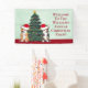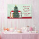 These beautiful Pembroke Welsh Corgi dogs have their heads tilted inside of a cute Santa Claus hat. The two pups are sitting in front of a pretty Christmas tree on this fun party decoration. A lovely corgis holiday banner with a wonderful drawing of a tricolor and a red and white corgi pair.