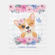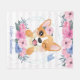 Cute Corgi Dog Flower Wreath Blue Butterfly Custom Fleece Blanket