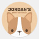 Cute Corgi Dog with Personalised Name Classic Round Sticker