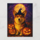 Cute Corgi Happy Halloween Fall Autumn Postcard for Postcrossing