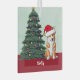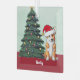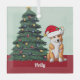 This beautiful Pembroke Welsh Corgi dog has a cute Santa Claus hat and an adorable head tilt. The pretty pup is sitting in front of a gorgeous Christmas tree decorated with colourful ornaments. Personalise your pet's name in lovely cursive under the wonderful drawing of my favourite doggy.