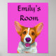 Cute corgi dog poster, ideal for bedroom door, fun image of adorable cute corgi dog with custom name, a sweet corgi dog image by Digital Dawg dawn from one of her instagram followers dogs, as a fun artwork design.