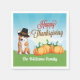 This beautiful Corgi Thanksgiving party paper napkin features a cute Pembroke Welsh Corgi dog wearing a funny pilgrim hat next to a trio of pumpkins in an autumn field. Customise with your own custom text for a personalised dinner or lunch with family.