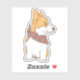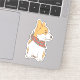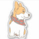 This dog sticker features a drawing of a corgi sitting and looking to the side wearing a bandanna with a gingham chequered pattern on it. Corgis look so cute with bandanas!