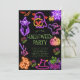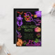 This spooky-fun invitation features a witch, Dracula, a devil, mummy, Frankenstein, skeleton, and pumpkin kid. The words "Halloween Costume Party" are written in a fun and festive font. It's the perfect way to invite your kids' friends to a spooky-sweet Halloween party where they can come dressed up as their favourite monsters.