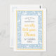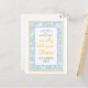 Sweet and charming like Grandma's house, this silly goose birthday party invitation postcard features a light blue, white and yellow colour palette with a hand-drawn border of little white geese and tulips making it an easy and budget friendly choice for your little one on their big day.