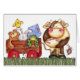Cute cow card that says. cow pulling a wagon full of toys.