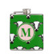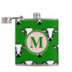 A pattern of stylised, cute cow faces on a bold green back ground. In the centre in a trendy, pink roundel with a green, customisable monogram. If you would like any help please feel free to contact me via the " ask this designer " button immediately below this text.