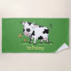 Our cute black and white friesian milking cow is in a meadow of green grass eating yellow daisies. Lots of bovine fun!