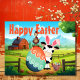 Cute Cow, Rooster and Colourful Eggs Farm Easter Holiday Postcard