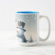 Cute cow & snowman in the winter field Two-Tone coffee mug
