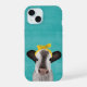 Cute Cow with Bow Turquoise Blue iPhone 15 Case