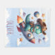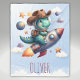 This personalised fleece blanket features a whimsical dinosaur on a wild ride. Our trex dino wears a cowboy hat over his astronaut helmet, ready to conquer the starry skies. He rides a flying space rocket, rocketing through a rodeo of fluffy clouds. The soft minky fabric will keep your little adventurer cosy and warm, while the name adds a special touch. This unique blanket is sure to be a treasured keepsake for years to come.