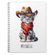Cute snow leopard with a cowboy hat and scarf personalised notebook.
