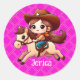 Cute Cowgirl and Horse Western Pink Classic Round Sticker