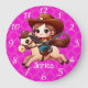 Add to your cowgirl's fun with this western-inspired design featuring a cute girl wearing a hat and riding a horse.