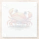 A glass coaster with a watercolor illustration of a very cute crab.