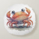 A round pillow with a watercolor illustration of a very cute crab.
