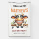 Celebrate in style with this Funny and Crazy Cow 1st Birthday banner! Featuring a playful cow and bright, cheerful colors, it’s perfect for decorating the party space, cake table, or photo backdrop. This adorable farm-themed banner brings lively barnyard vibes to any first birthday celebration. Easy to hang, cute, and festive, it instantly adds fun and charm that kids and guests will love!