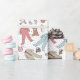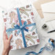 This cute personalised wrapping paper for Baby's First Christmas features a hand-drawn pattern of baby bodysuits, adorable winter stuffed animals (penguin, reindeer, teddy bear), bibs, bottles, pacifiers and xmas gifts, all against a cream background with scattered cute little stars. Personalise with Baby's Name to make this wrapping paper uniquely yours!