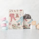 This cute personalised wrapping paper for Baby's First Christmas features a hand-drawn pattern of baby bodysuits, adorable winter stuffed animals (penguin, reindeer, teddy bear), bibs, bottles, pacifiers and xmas gifts, all against a soft cream background with scattered cute little stars. Personalise with Baby's Name to make this wrapping paper uniquely yours!