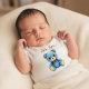 A sweet crocheted teddy bear themed personalized baby one piece.. A sweet blue and brown crocheted teddy bear graphics, Add baby's name in the personalize area.