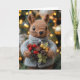 Send Season's Greetings to your friends and family with this lovely woolly squirrel card. They hold festive pine cones and crocheted flowers as the Christmas tree lights twinkle behind them.