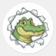 Adorable cartoon crocodile popping out through a torn paper effect.