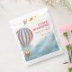 Baby showers favor bag features cute cub on a hot air ballon flying over the clouds.