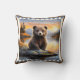 Pillow featuring a painting of a cute cuddle bear cub. Great to cosy up with on the couch and for a family cabin in the mountains.