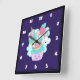 A clock with a cute illustration featuring a cupcake and ice cream smiling with joy. A rainbow and hearts surround the drawing. Also a cute fluffy cloud is also smiling with happiness. The cupcake and ice cream also have a trendy unicorn horn on top. Cute and adorable design full of joy.