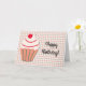 This cute birthday card features my digital artwork showcasing a plaid pattern for a background and a graphic art cupcake in like colour tones for whimsical retro appearance. The front of the card states, “Happy Birthday!” and the inside of the card states "Hope you have a sweet day!". There is plenty of room to add your own personal note as well. This sweet card would brighten up anyone's birthday.