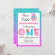 Bright and colourful pink/ blue/ turquoise/ aqua/ lilac/ purple glitter sparkles first birthday invitation with a sweet and cute cupcake and doughnut and candy letters. Easily add your full name, and the date, time and address of the birthday party. Perfect for a sweet little princess turning one!