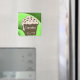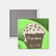 A fun magnet featuring a mocha cupcake with chocolate sprinkles on a shaded green background.