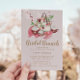Red floral arrangement with a blush backdrop and cute cupcake illustration for your bridal shower invitation. Check our store for more bridal brunch invitation options.