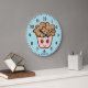 Lovely whimsical wall clock for kid's room. The design features a sweet smiling kawaii face cupcake and large 12 hour numbers. It's personalized with a custom name discretely printed under the number 6 which adds a subtle personal touch. Makes a wonderful wall decor item for a nursery or a home of a cupcake lover.