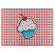 Cool, cute blue cupcake with white icing, colourful sprinkles, and a red cherry on top on cute gingham; red, pink, and white chequered country pattern. Great gift for kids or bakery owner!