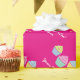 Cute cupcake wrapping paper with personalised text. Cheerful neon pink cup cake pattern giftwrap for Birthday, Baby shower, wedding, sweet 16, Christmas etc. Fun girly design with colourful sweets and custom message. Food desserts theme. Pretty wrappingpaper for adults and kids.