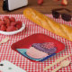 Make your dessert table extra sweet with these vibrant cupcake-themed paper plates featuring an original oil pastel design. The bold red background, soft pink cupcake liner, and rich purple frosting create a playful and eye-catching look that instantly brightens any celebration.