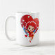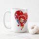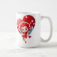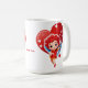 Vibrant cartoon cupid with wings, a red dress, and a bow flies across a heart-filled red backdrop. Perfect for Valentine, romance, and family-themed projects.