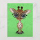 Cute Curious Baby Giraffe Wearing Glasses on Green Postcard