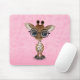 Cute Curious Baby Giraffe Wearing Glasses on Pink Mouse Pad
