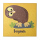 Cute curious funny brown owl cartoon illustration ceramic tile