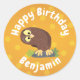 Cute curious funny brown owl cartoon illustration classic round sticker